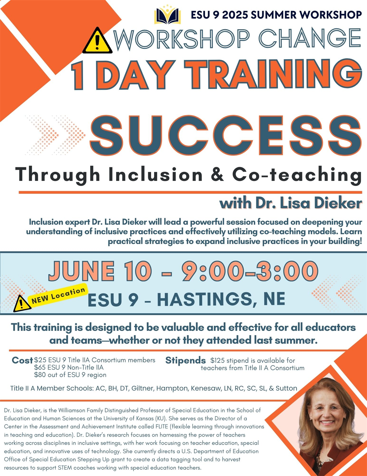 | Description | | Inclusion expert Dr. Lisa Dieker will lead a powerful session focused on deepening your understanding of inclusive practices and effectively utilizing co-teaching models. Learn practical strategies to expand inclusive practices in your building!