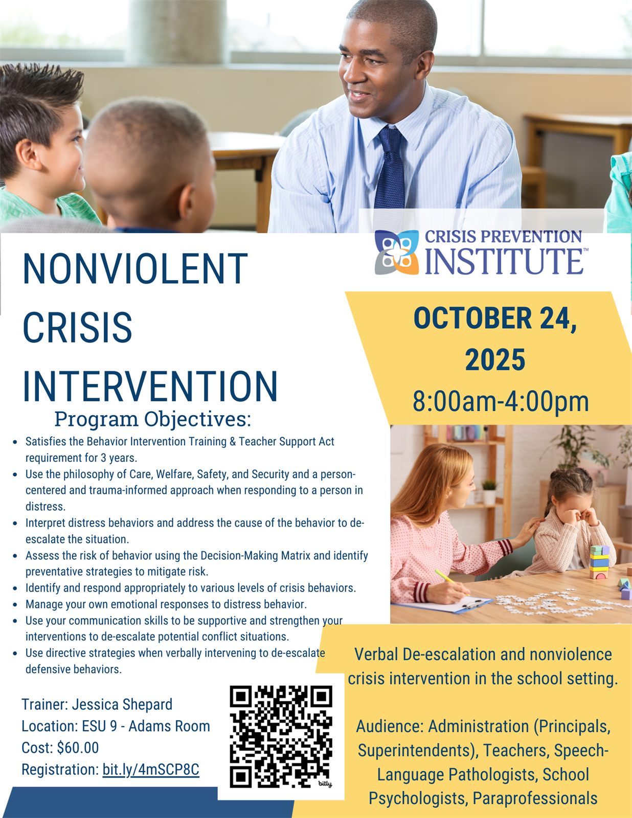 | Description | | Verbal De-escalation and nonviolence crisis intervention in the school setting.